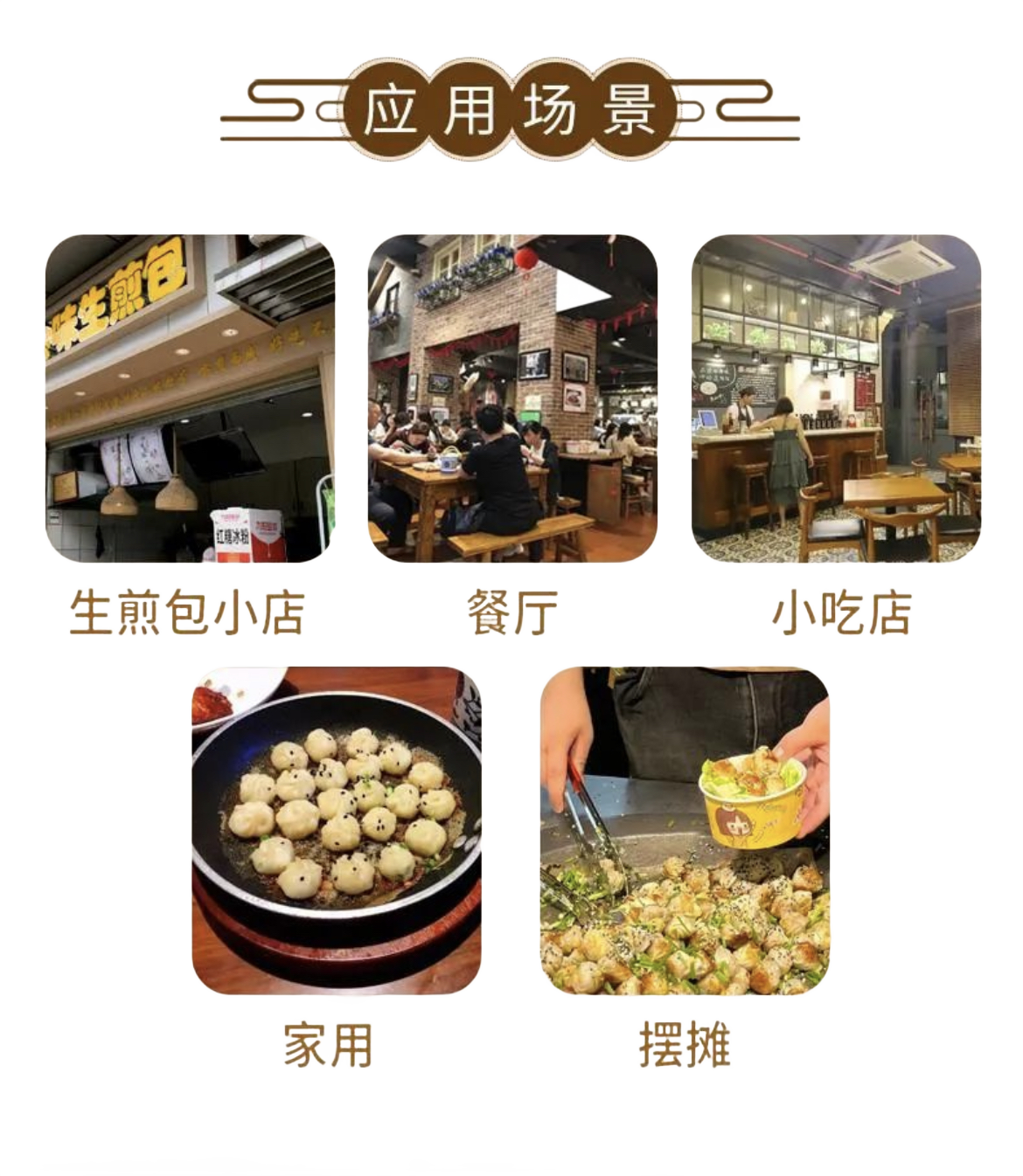 包装形式多样,从碗装、盘装,到杯装、袋装、搭配各式饮食套餐、例如:拇指生煎包+奶茶/酸梅汤/可乐